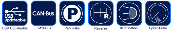 - Provides outputs for speed pulse, park brake and reverse gear